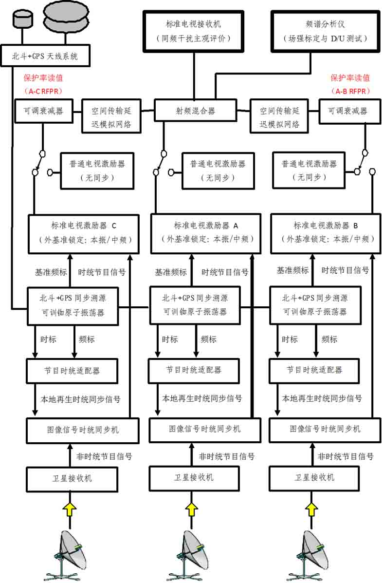 电视精密同步广播射频保护率(RFPR)试验平台框图