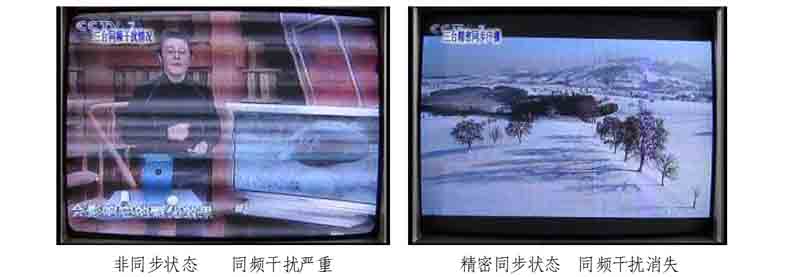 一. 电视精密同步广播技术原理 电视同频干扰的研究证明,电视同频干扰对接收图像的损伤来自两个方面: = 1 \* GB3 ①同频台之间图像载波频差形成的差拍干扰,即接收图像上的“百叶窗”滚动条纹干扰; = 2 \* GB3 ②同频台之间的图像内容相互叠加,因图像信号的行/场频率与相位的不同步,形成运动的“鬼影”。