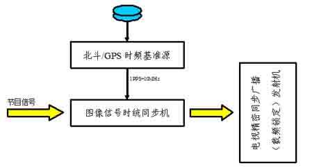 GPS精密时频基准源原理框图 电视精密同步广播图像信号的时统同步,是在电视同步广播适配器中完成。通过不同路径传输至各同步发射台的图像节目信号,经由电视同步广播适配器的数字化处理和存贮,将图像信号的帧相位和行相位与1PPS和10MHz时钟进行严格的粘滞同步,从而实现各同步发射台之间图像节目信号的时统同步。